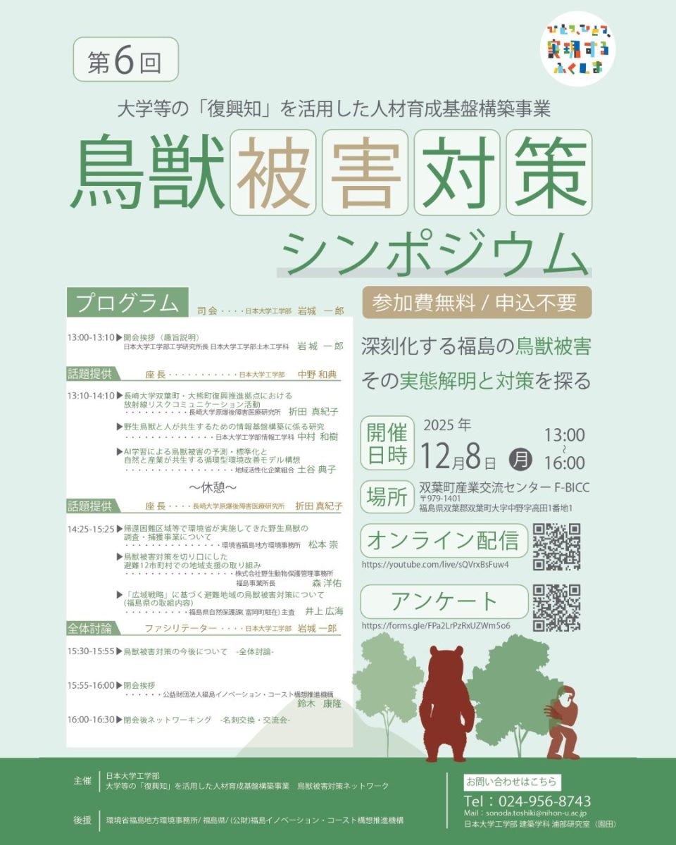 12/8(月)開催の福島県の鳥獣被害対策シンポジウムに当社研究員が登壇します。