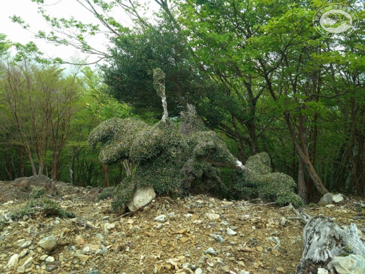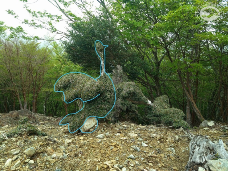 シカが枝葉を採食すると植物が刈り込まれて盆栽のような形状になり、シカの植物への影響を把握する指標となります。