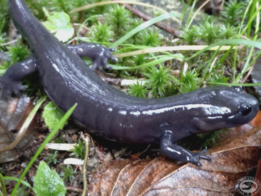 写真をご覧ください。このつややかな紫黒色のボディ。「オオダイガハラサンショウウオ」です。